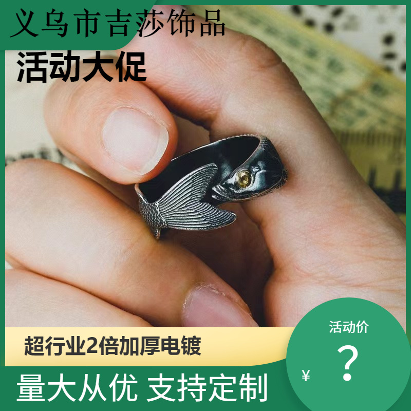 個性的なデザインの魚の形の指輪の泰銀の金メッキの口の喜びの指輪の復古のファッションは大きさの卸売りを調節することができます。