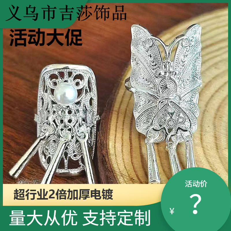 国潮古風透かし彫り国風蝶花真珠流蘇指輪女性大衆デザイン個性指輪ファッション女性