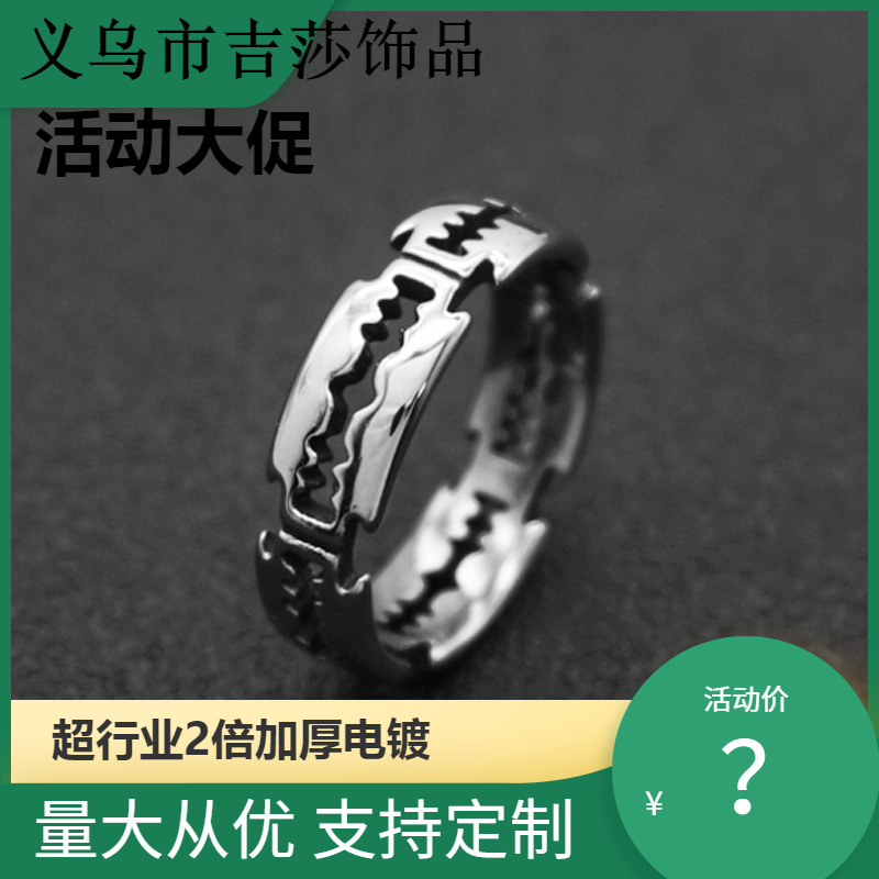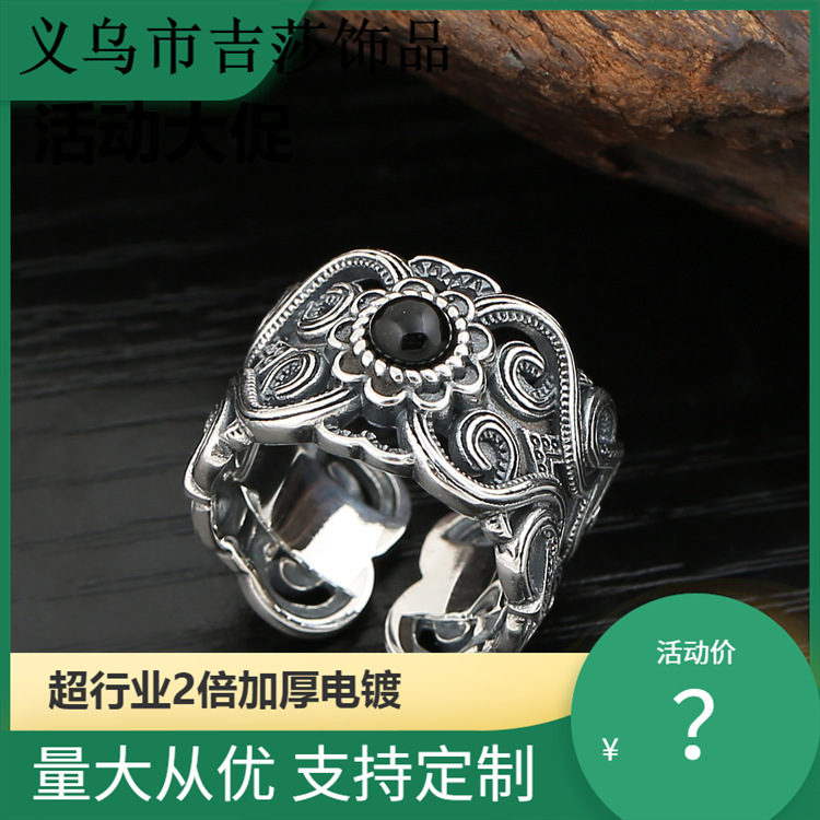 泰銀レトロ創意ファッション個性民族風指環モンゴル模様男性開口指輪メーカー卸売り