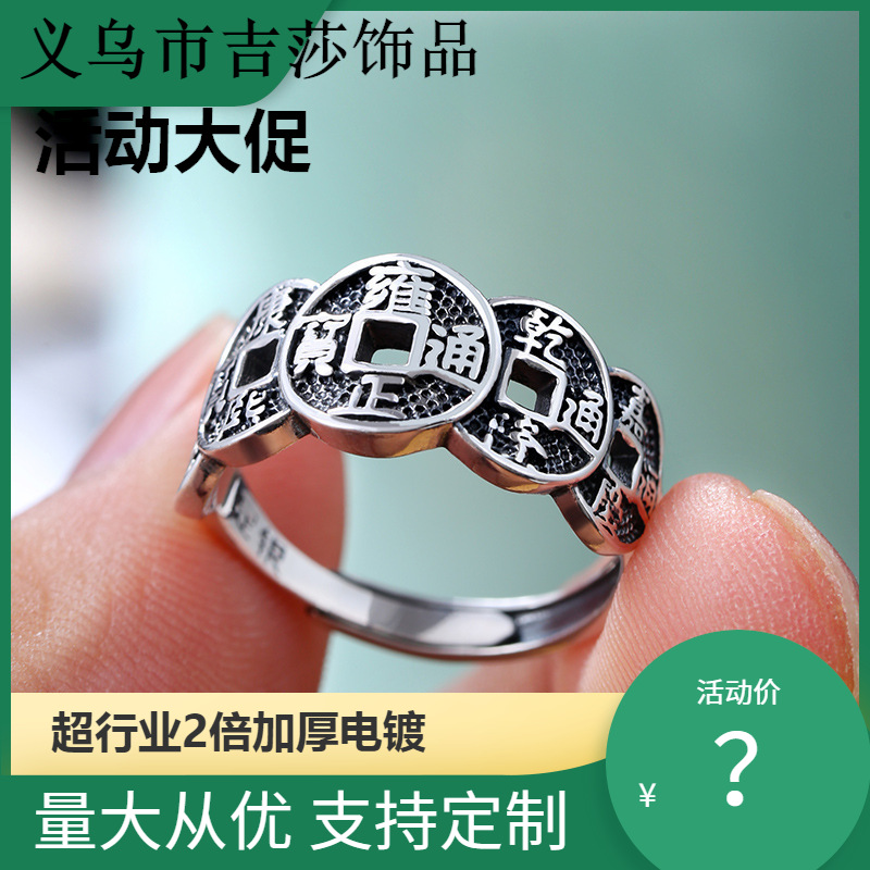 泰銀五福銅銭は銀五帝の硬貨をめっきして指輪の男女の素銀の百字の福の人差し指の指輪のメーカーを開きます。
