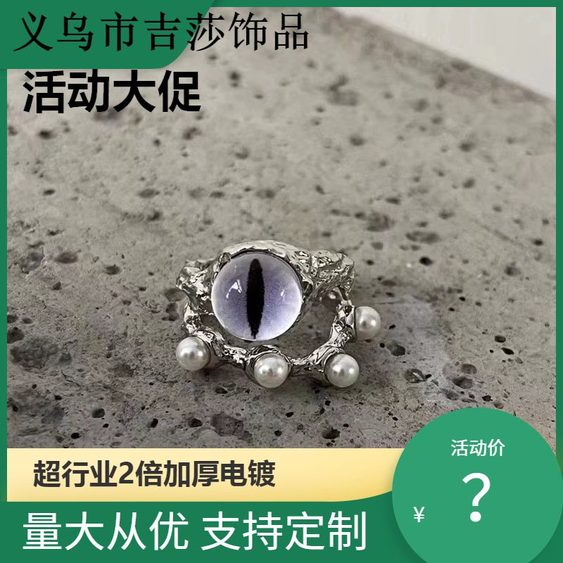 悪魔の目は真珠の指輪をはめ込んで、大衆はinsの冷たい風の男女の同項の中性の開口の指輪の潮を設計します。