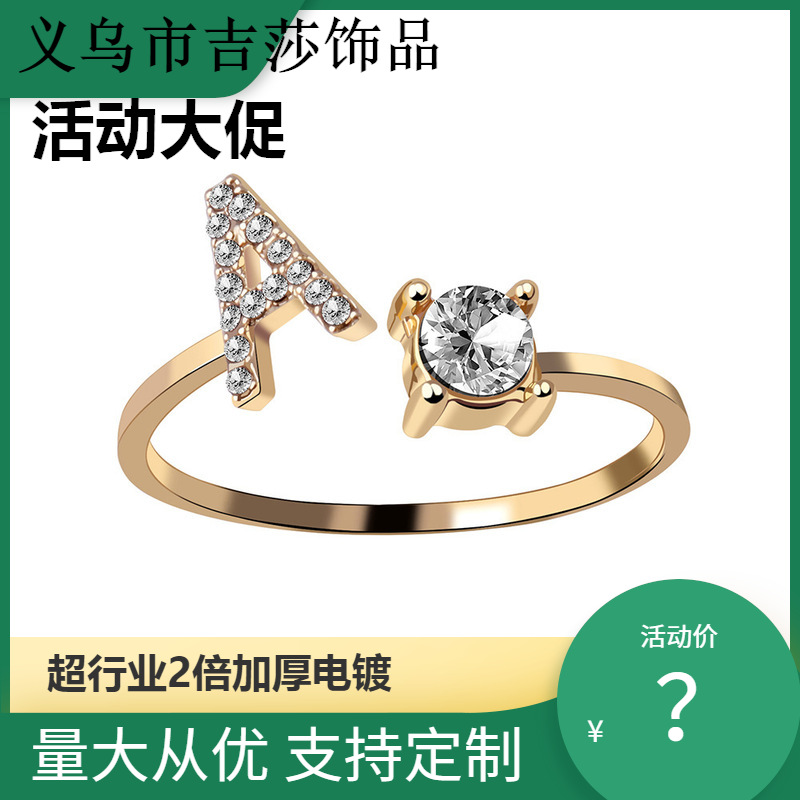 クロスボーダー起爆指輪アクセサリー創意レディースリング調節可能なオープンリング26アルファベットリング卸売