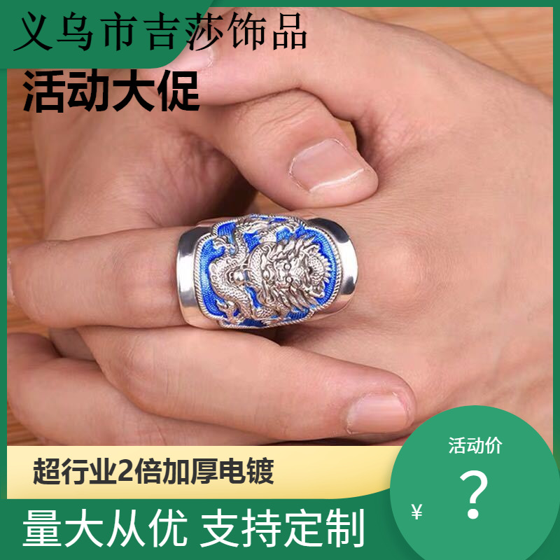 素銀の指輪の男性の広い面は中国の龍の指輪の騰龍の景泰青の指輪の宮廷の復古の男性の指輪の卸売りを開きます。