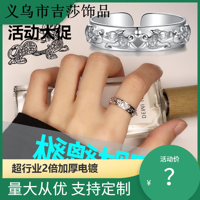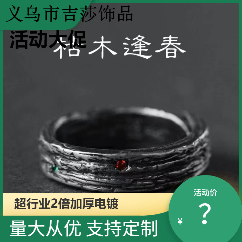 泰銀枯木逢春指輪復古風カップル対戒男女潮金調節可能尾戒個性食指戒