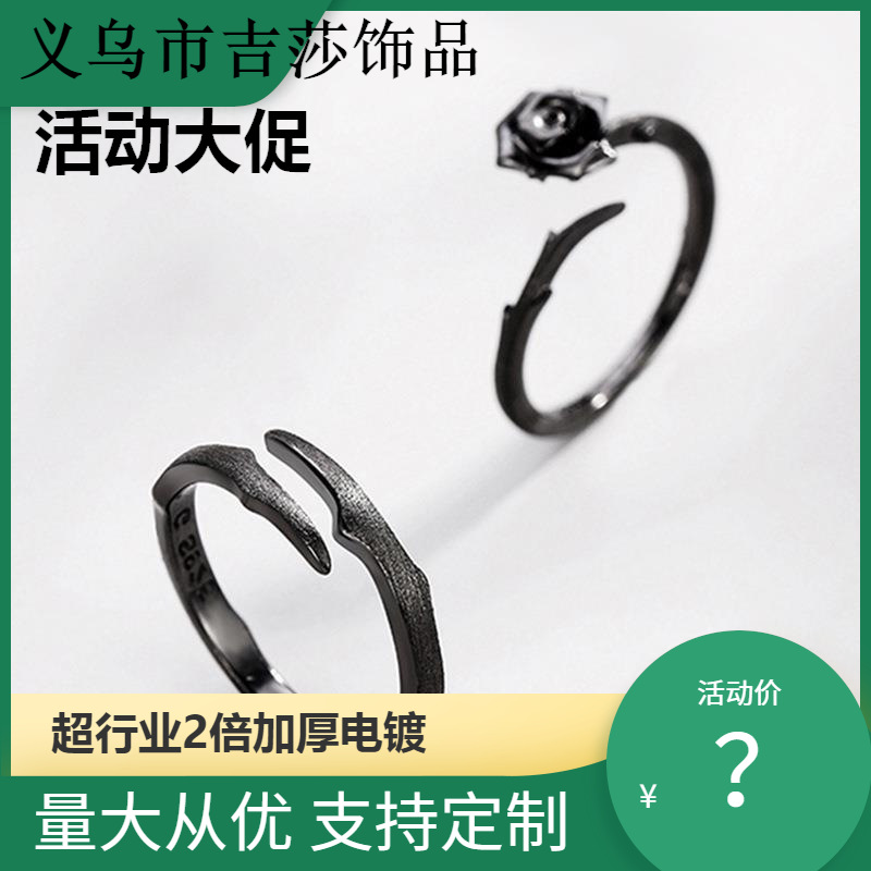 黒薔薇カップルの指輪男女ペアファッションアイデアいばら薔薇開口部調節可能な指輪