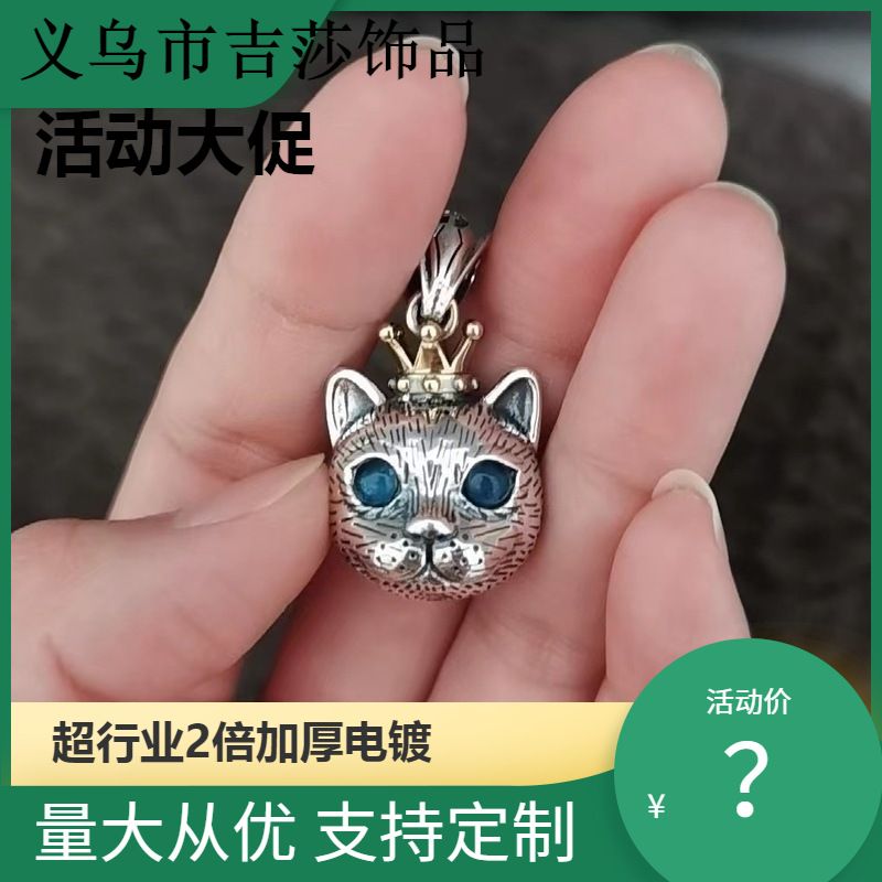 大きな目の萌え猫s 925泰銀ペンダントクラウンネックレス男性のファッション個性的な覇気漫画カップルのアクセサリー