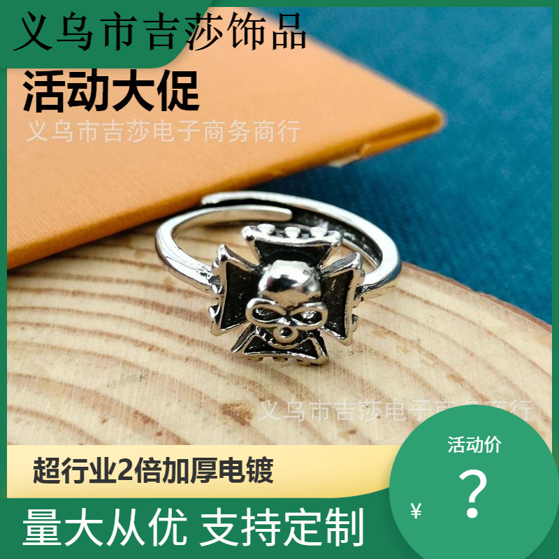 新商品wish人気創意アクセサリー欧米風クラウン滴油スカルクロスリング卸売り