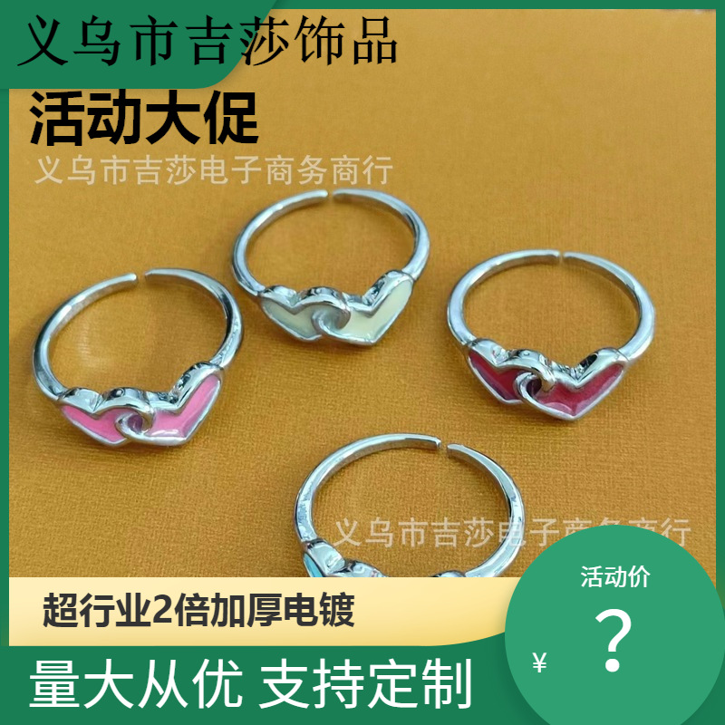 欧米wish爆型夜光ファッション女性愛ハート型指輪心連心銀メッキ個性双愛指輪