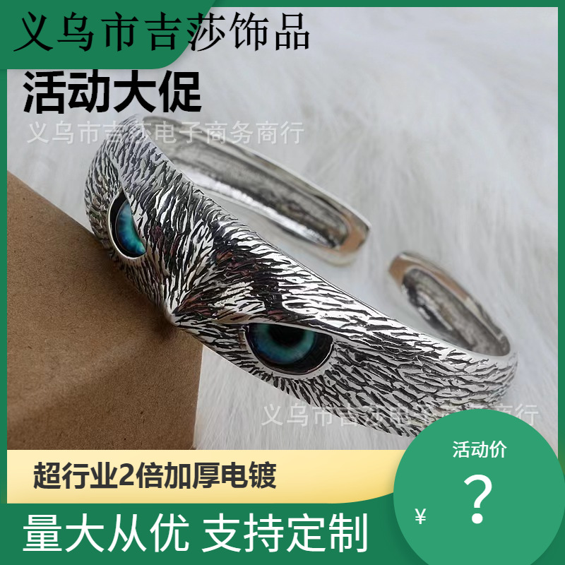泰銀アクセサリー復古悪魔の目フクロウ誇張ブレスレット指輪男開口欧米シンプル合金ブレスレット