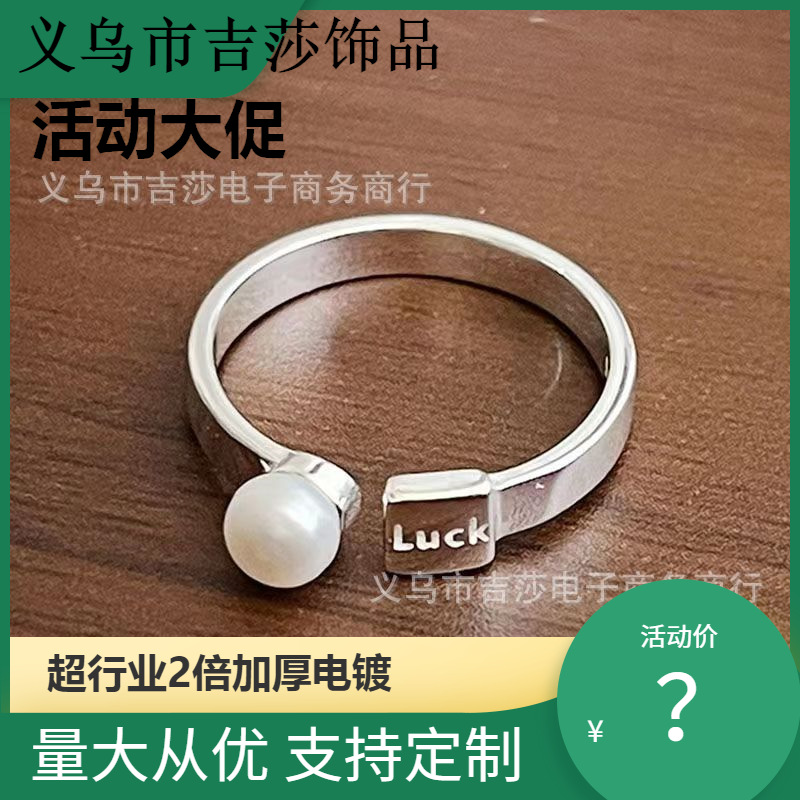 ルック文字シンプルな指輪真珠女ins小衆デザイン感高級軽贅沢ファッション気質口リング