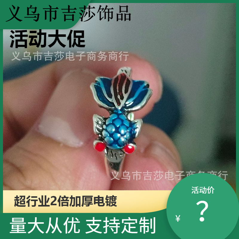 レトロメッキ泰銀エナメル焼青金魚指輪女性民族風泰銀錦鯉小魚活指輪アクセサリー卸売り