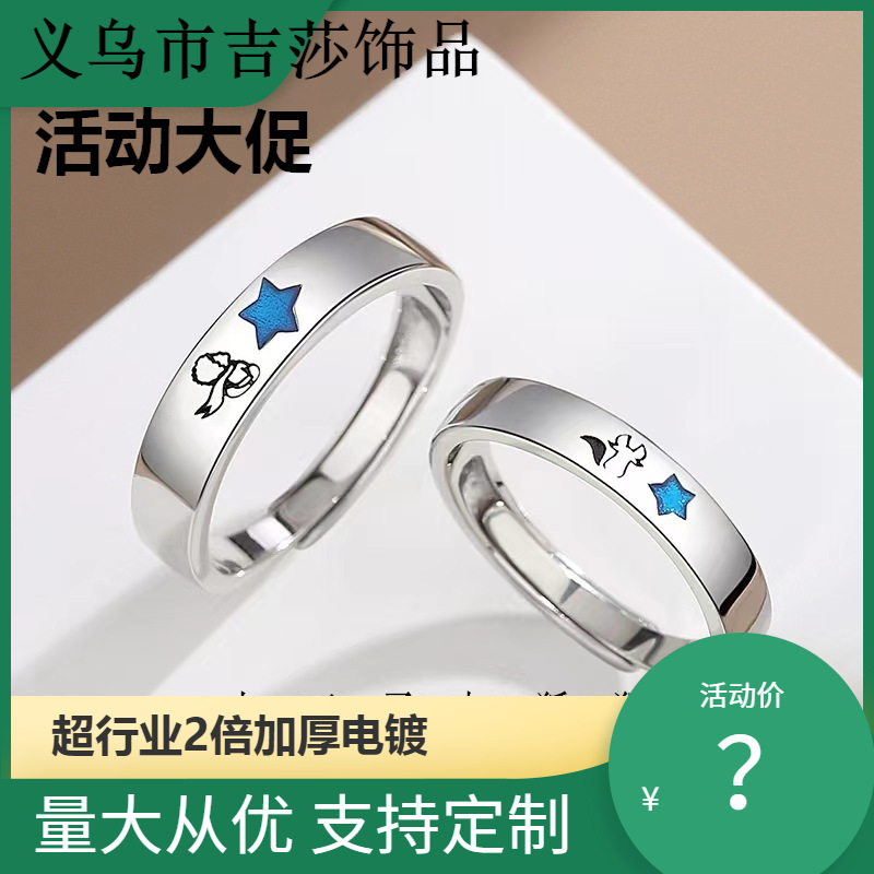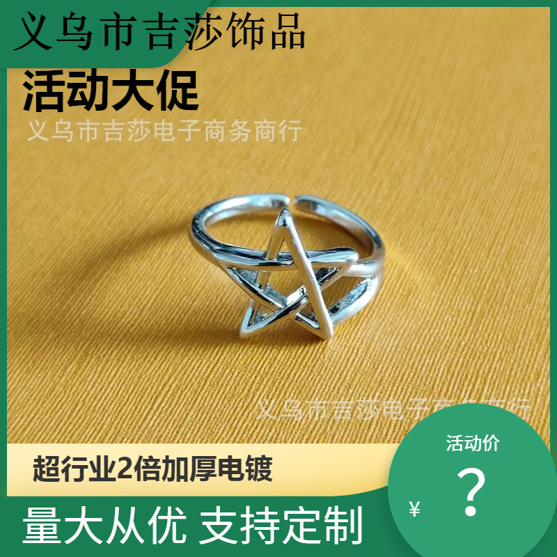 韓国韓国版泰銀レトロ星泰銀指輪欧米芸術スタイル五角星開口合金指輪