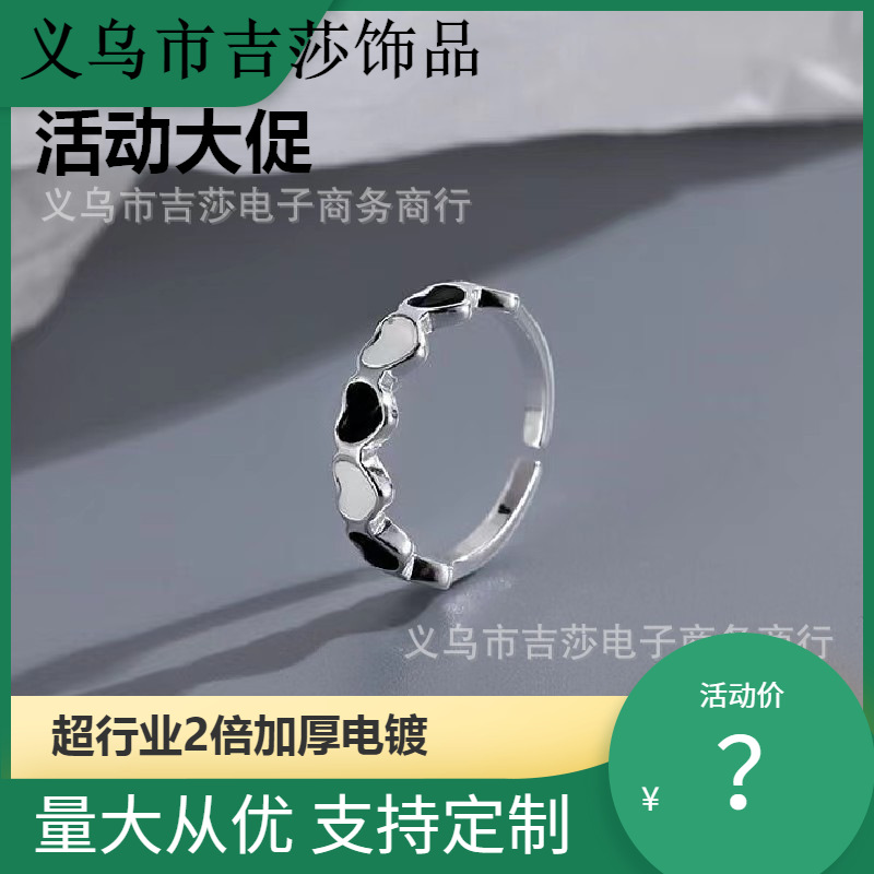日韓風の新型白黒の愛の指輪の女性のシンプルなファッションの高級感の冷たい風の口の個性の指輪