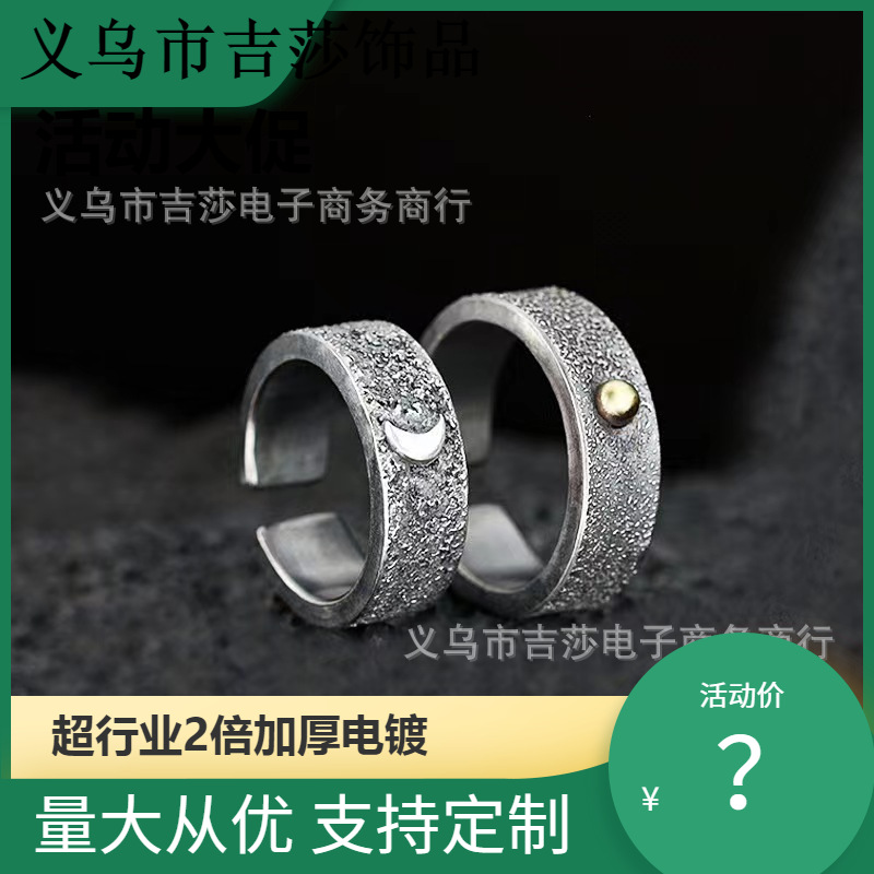 創意朝の夕暮れと日月のカップルのペアリングの気質の男女のネットの赤い金の復古は古い潮をしてカップルの指輪を掛けます。