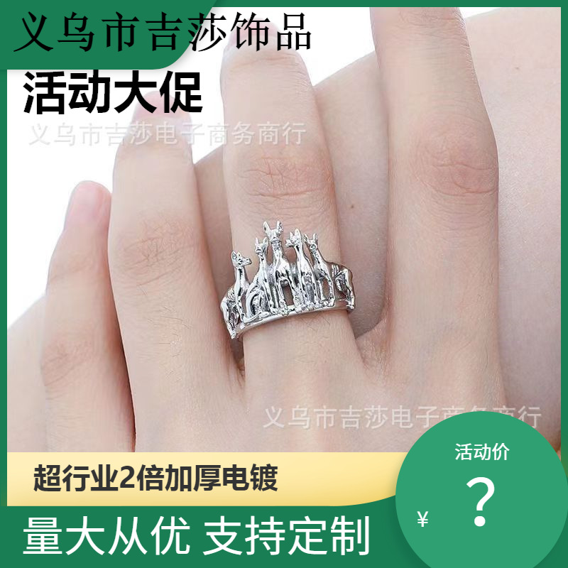 個性的な杜賓犬の指輪の女性のファッション的な個性の暗黒の復古のデザイン感の子犬の泰銀の口の指の輪の潮流