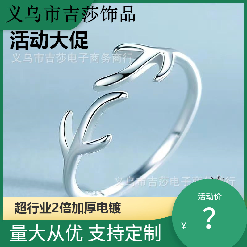 欧米のクリスマス冬の個性的な指輪ins風の女性の気質の銀色の動物のヘラジカの角の人差し指の開口の指輪
