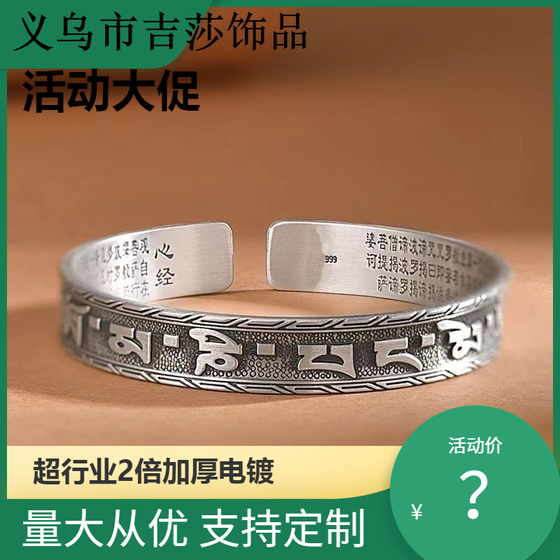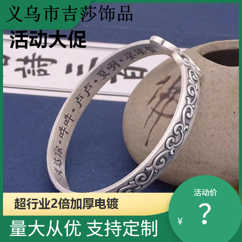 爆金メッキ999銀六子真言ブレスレットは無事に古いレトロなカップルのアクセサリーのトレンド男性合金の手環を作った
