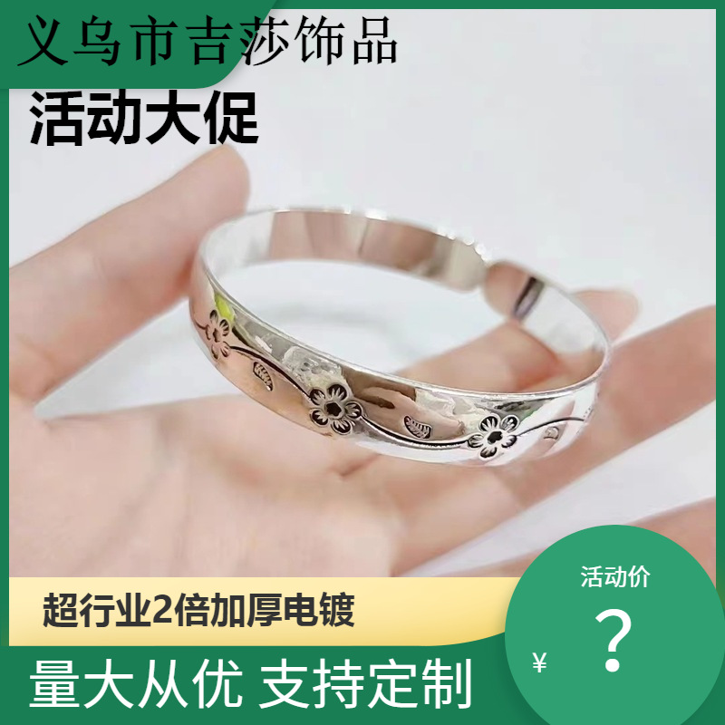 レトロな泰銀黒ファッション十全十梅手環女性の梅の開口ブレスレット合金メッキ銀アクセサリー卸売り