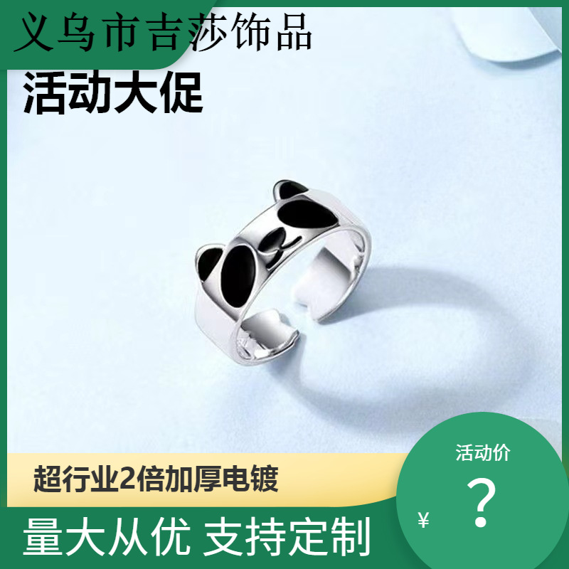 黒滴油エナメルパンダ泰銀指輪男女小衆設計開口部調節可能パンククール合金指輪