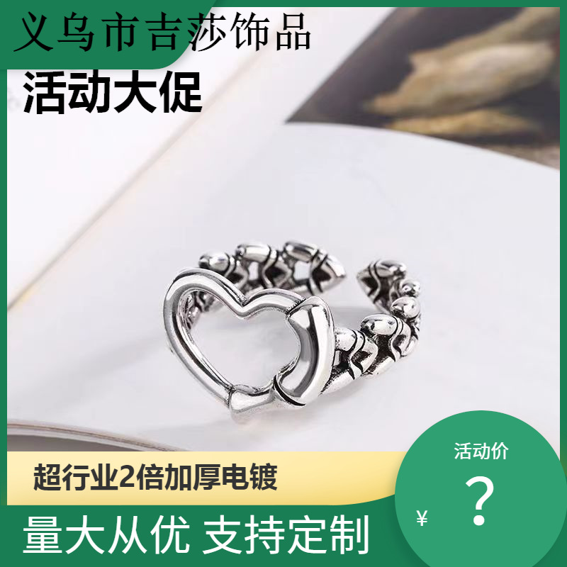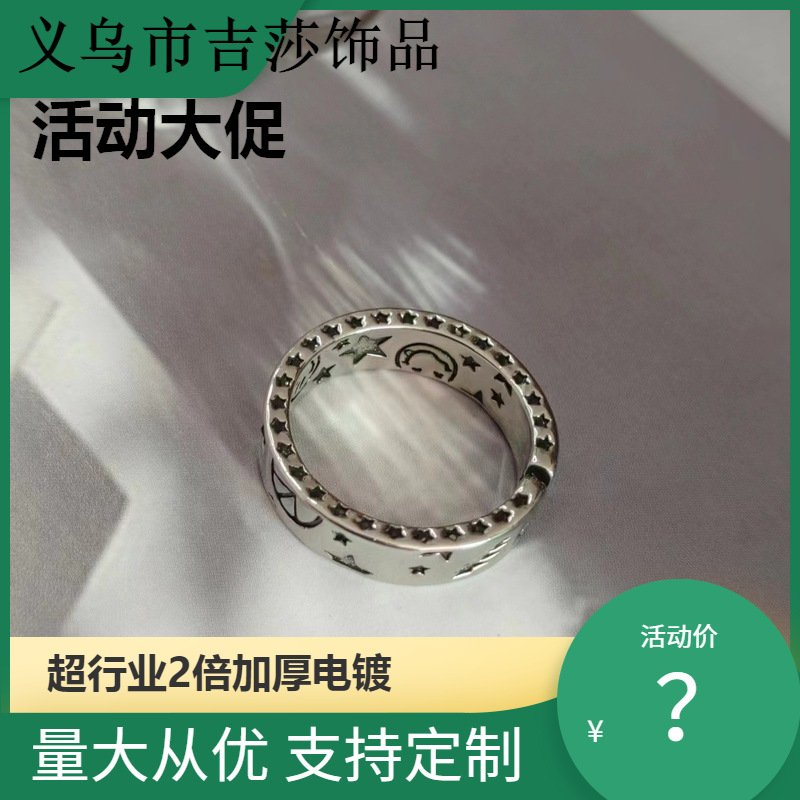 韓国版ins小衆デザイン感レトロ古い笑顔五角星質感合金メッキ銀指輪女性卸売り