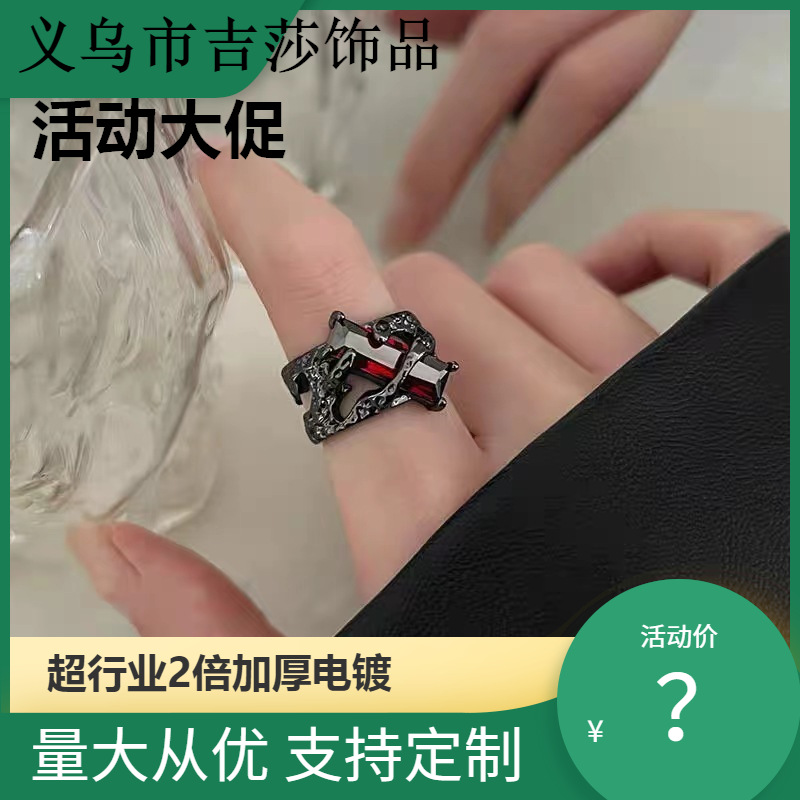 暗黒風欧米男女ファッション大衆デザイン潮クール個性共通宝石開口指輪亜鉛合金指輪