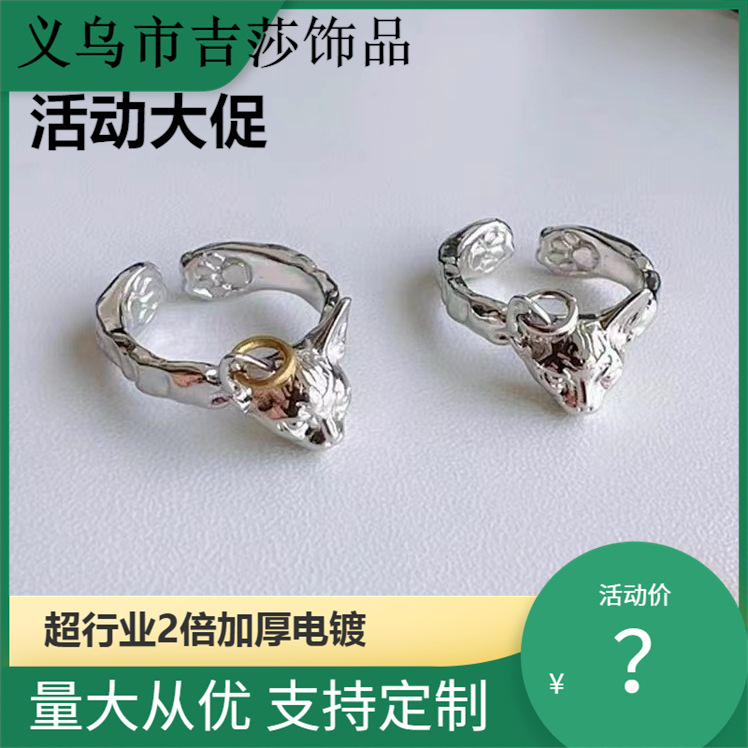 韓国版大衆デザイン感猫指輪女性insファッション個性シンプルで調節可能なダイエット指輪合金指輪