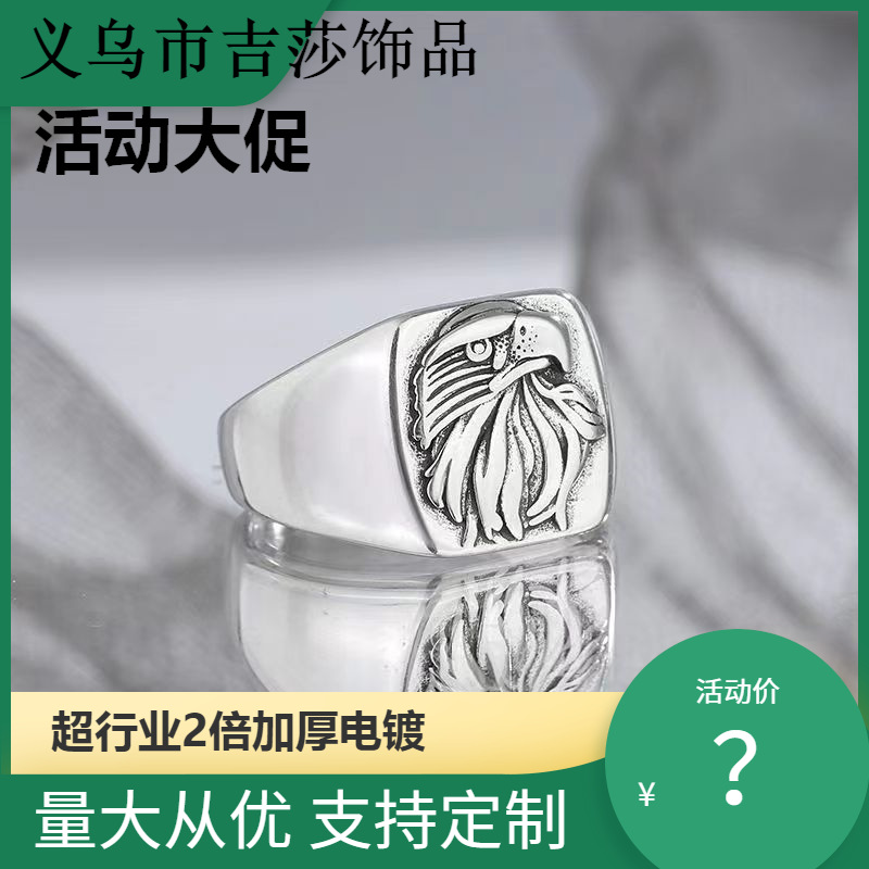欧米風創意レリーフ鷹頭指輪ネット赤男性個性潮流銀メッキ動物造形口リング