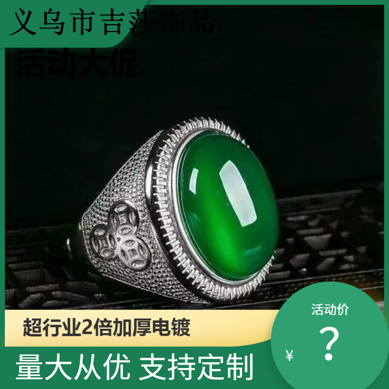 真似玉髄男金戒緑宝石男指輪銀メッキ瑪瑙指輪活口氷種祖母緑合金指輪