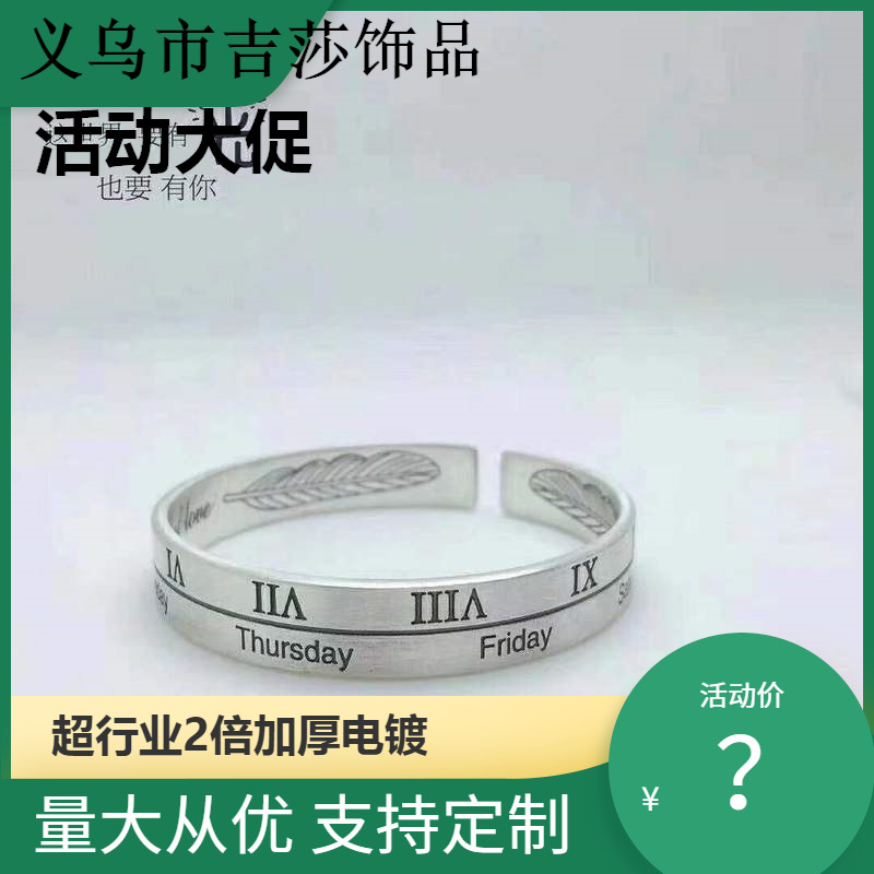 レトロなメッキ泰銀ブレスレット女性ギリシャ文字ローマ数字オープンハンドアクセサリーシンプルなファッション合金ブレスレット