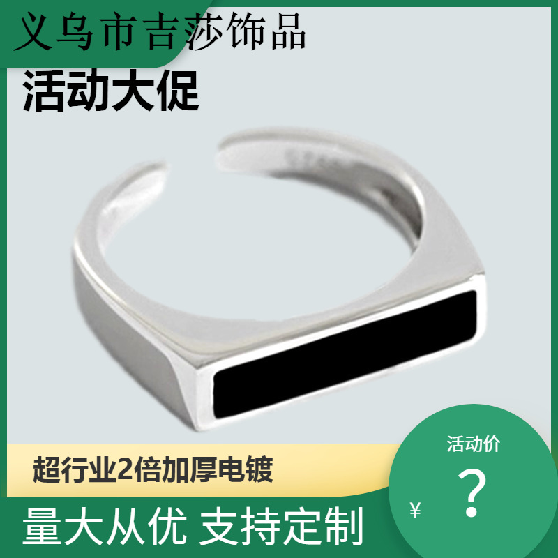 滴ゴム長方形の開口指輪女性日韓版小清新黒色一字指輪ファッション個性アクセサリー卸売り