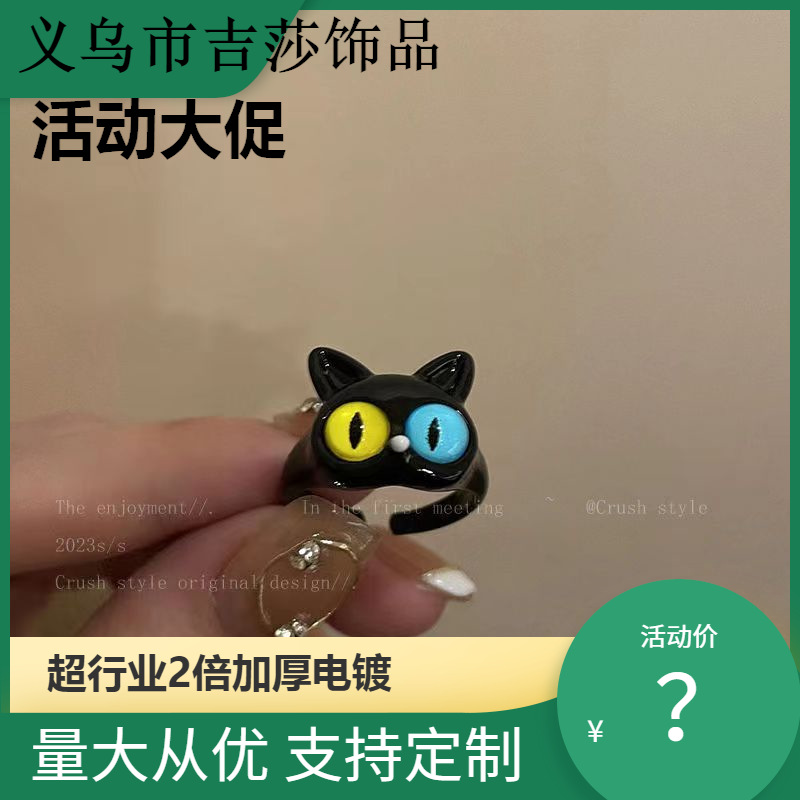 黒猫怪獣指輪女ins小衆デザイン感ファッション個性指環親友カップル尾戒