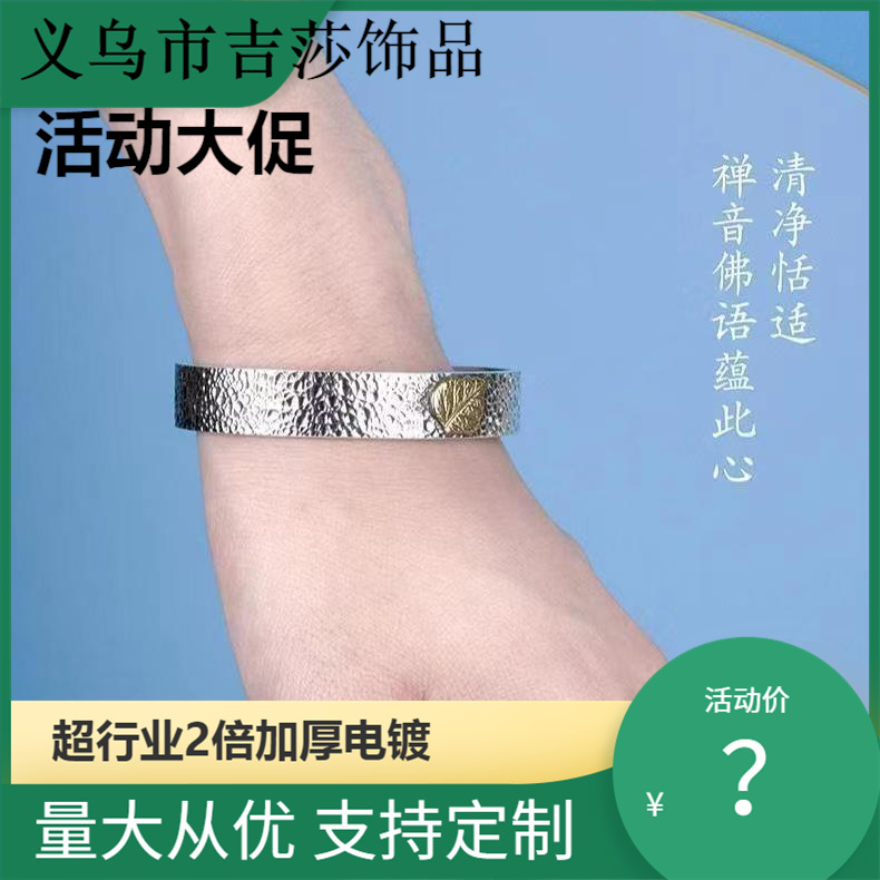 レトロ一葉菩提ブレスレット泰銀999心経女性カップル合金ブレスレット手環七夕バレンタインデープレゼント