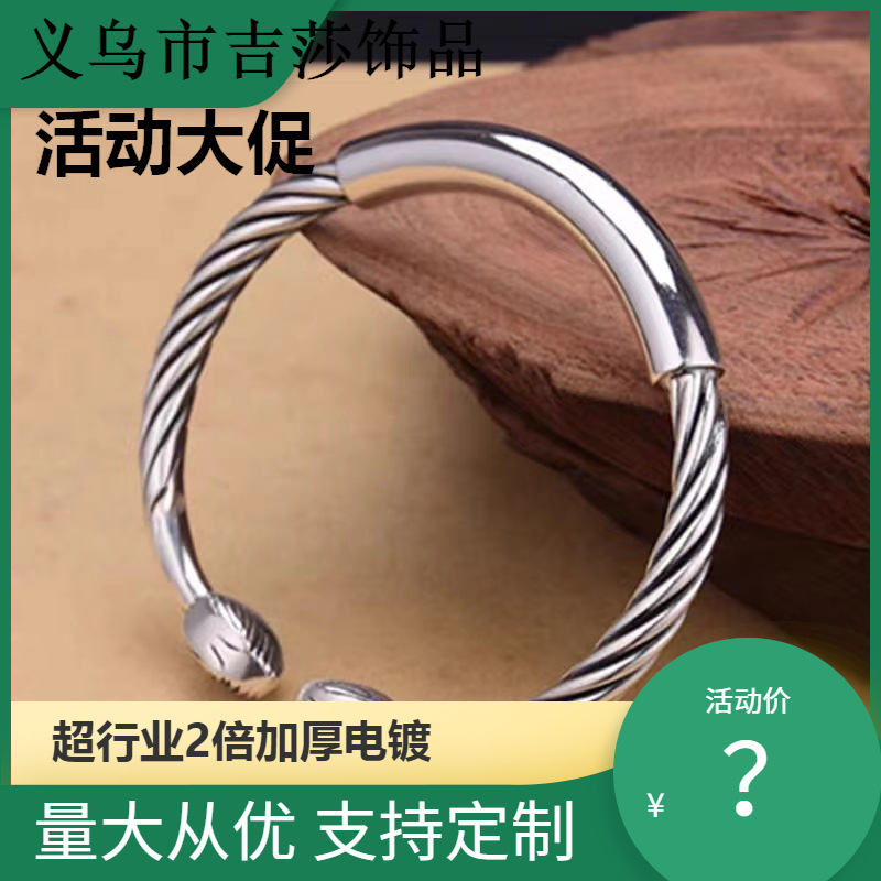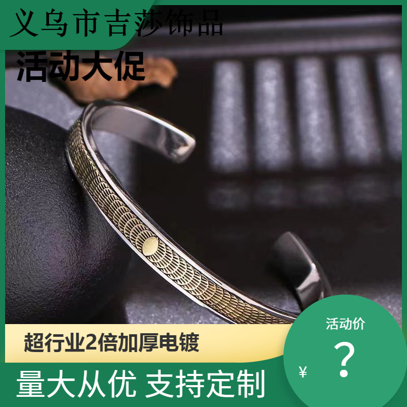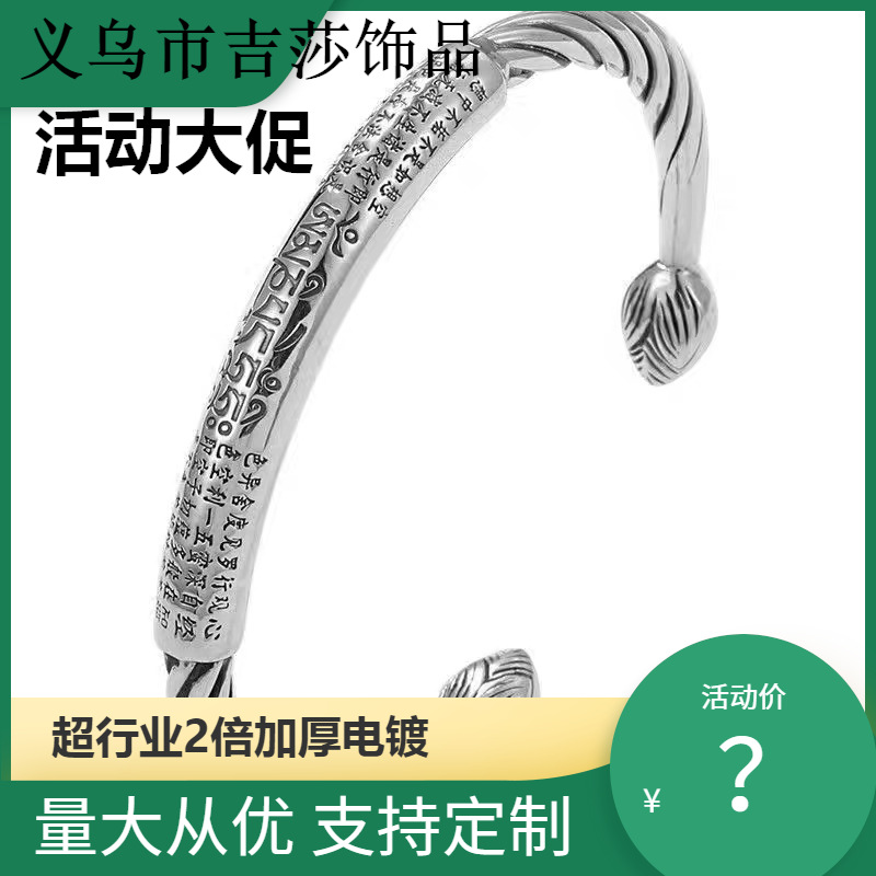 レトロ六字真言合金ブレスレット男性個性心経開口ブレスレットツイストブレスレット男性ブレスレット泰銀色