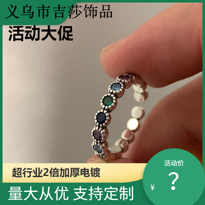 韓国のカラーの円形のジルコンの指輪の女性の復古のファッションのきらきらと輝く色の気質の甘くて簡単な指輪の卸売り