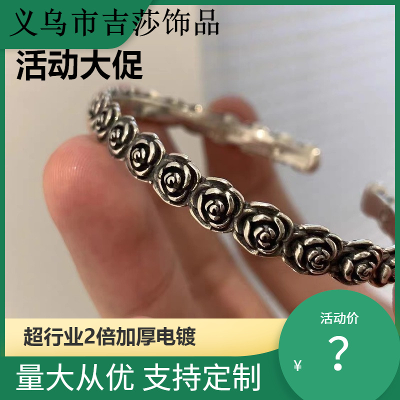 韓国版s 925バラの花のブレスレット女性レトロファッション重工個性合金ブレスレットヒップホップのブレスレット卸売り