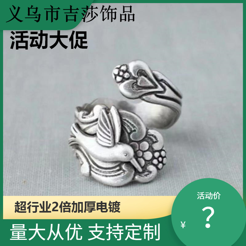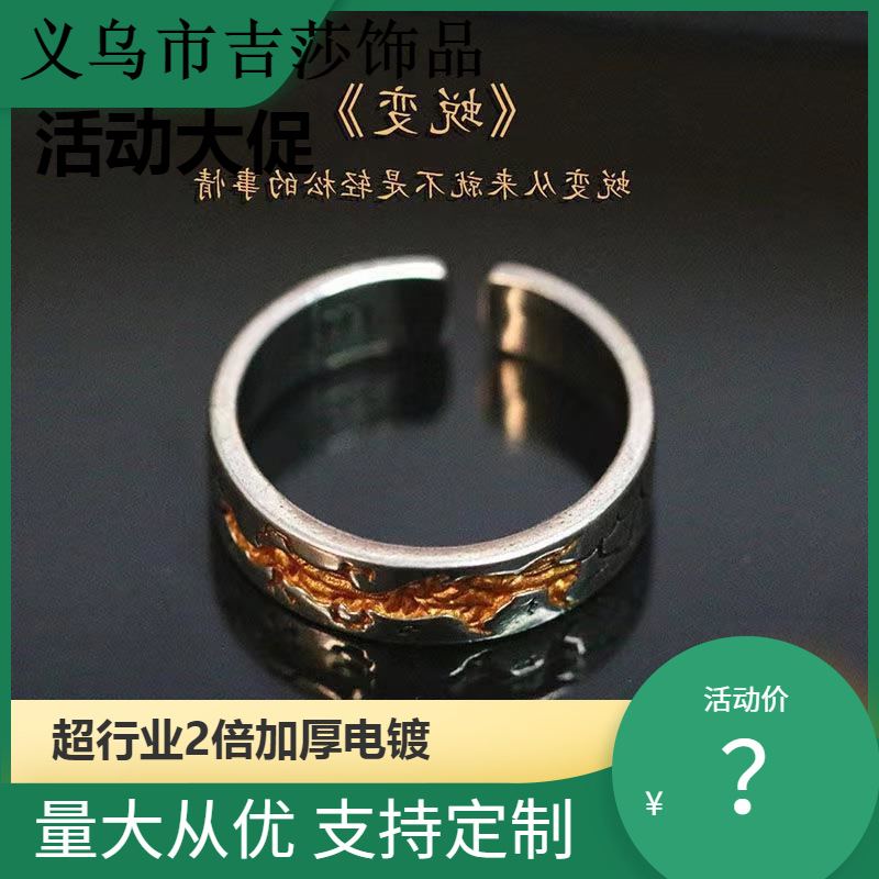 オリジナル冷淡風小衆男「脱変」925銀泰銀指輪古法カップルファッション個性開口戒