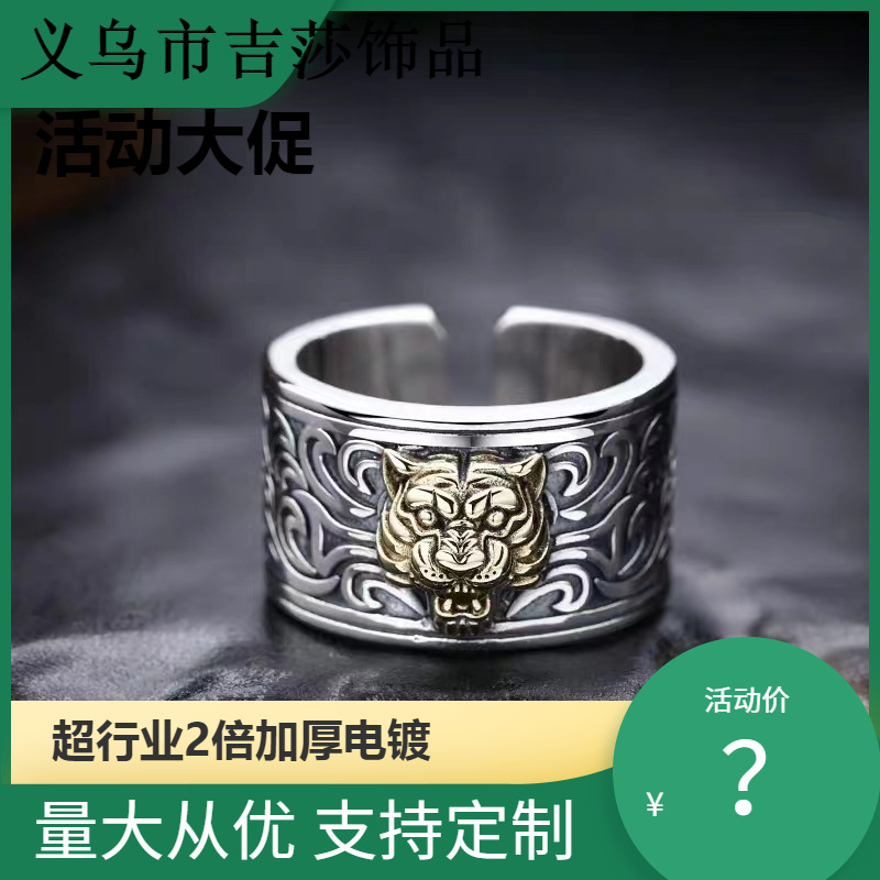 大衆がアメリカのレトロをデザインして、古い虎の頭の指輪を作ります。