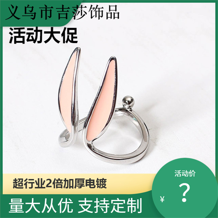 シンプルで甘いピンクのウサギの耳の指輪女性韓国版の個性が可愛いです。