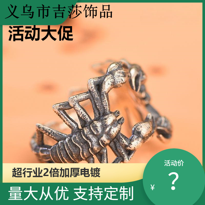 指輪男925泰銀ファッション個性ヒップホップ潮男サソリ口独身戒指戒子アクセサリープレゼント