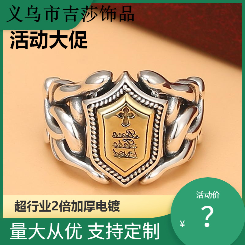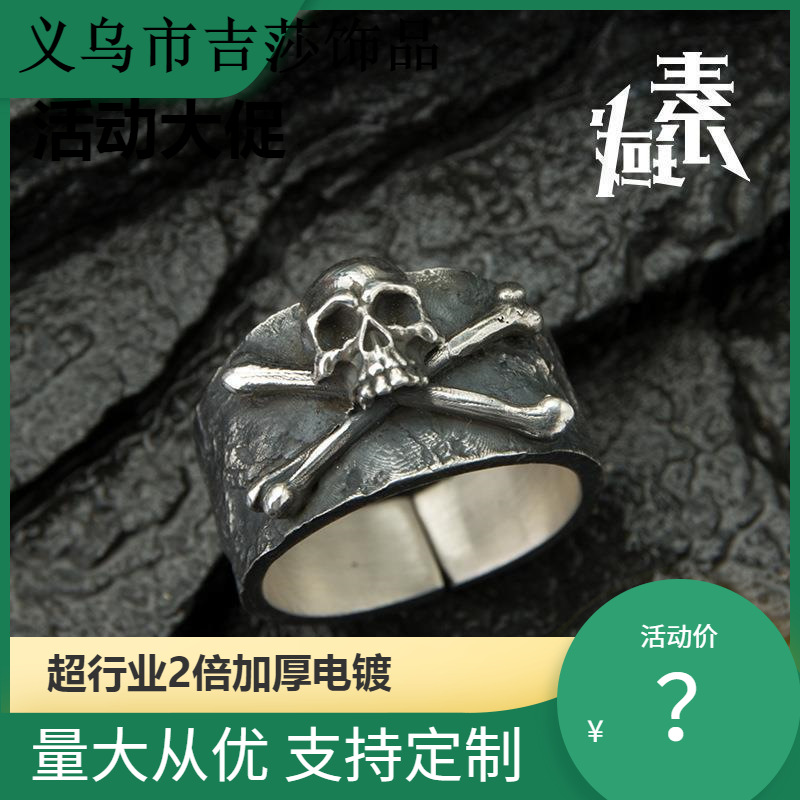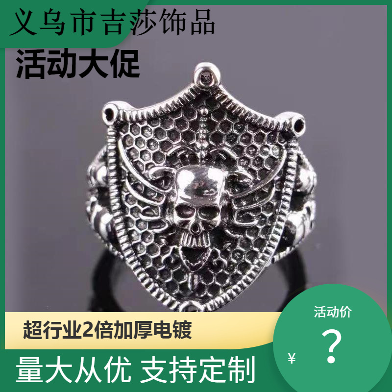 925銀レトロ旧潮牌頭蓋盾指環ファッション覇気男性個性泰銀指輪開口