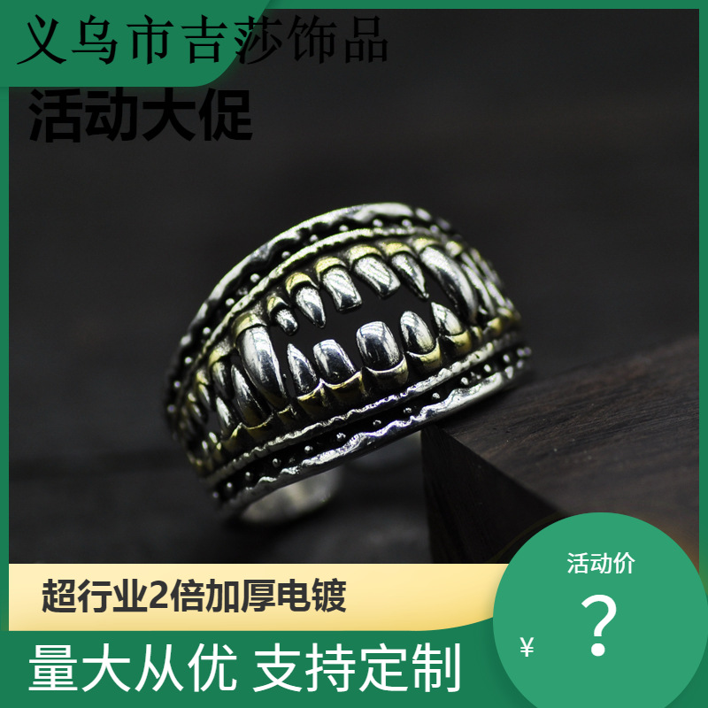 レトロな泰銀の悪魔の歯の幅の悪魔の指輪の男の手作りのアクセサリの日韓の欧米の潮流の民族の風の男女