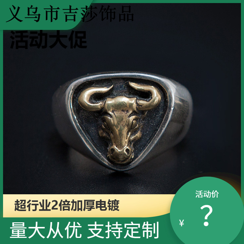 牛戒銅銀色分解牛人起きオリジナルデザイン誕生日男女友達プレゼント
