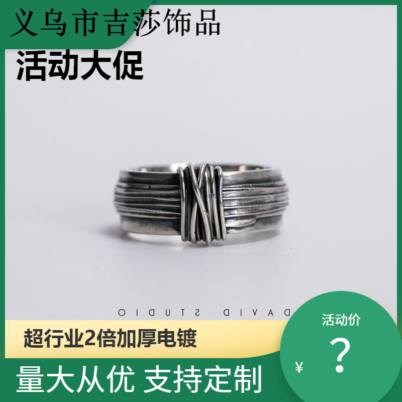 手で縛って糸を巻いて指輪の男の潮のinsを巻いて暗黒の復古風の泰銀の指の環の個性の開口部を結びます。