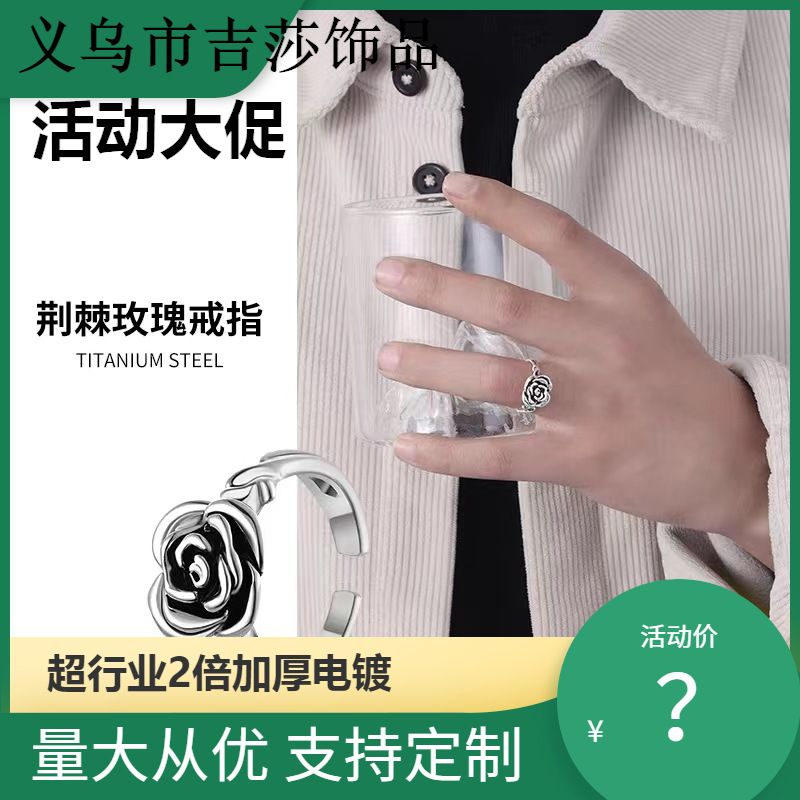 ゴシック黒薔薇カップル指輪手作り個性シンプル小衆ゴシック黒薔薇カップル指輪