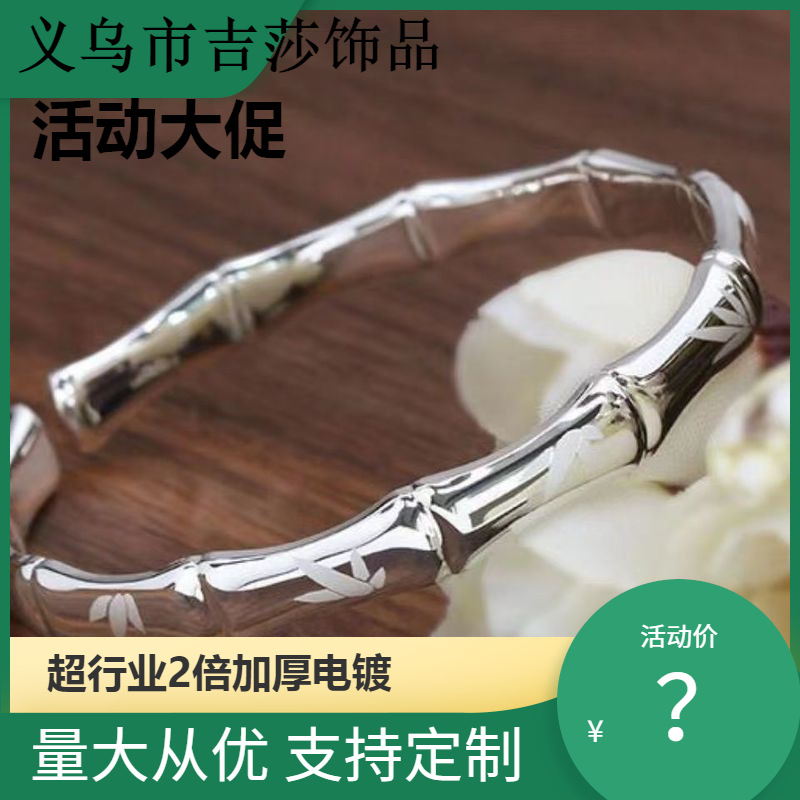 個性の清新な銀のブレスレットの泰銀の女性の手環の竹の開口部は竹の節の優雅な七夕のバレンタインデーの贈り物を調節することができます。