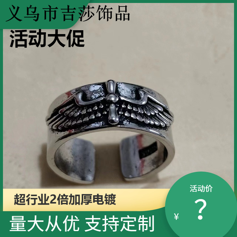 泰銀レトロインディアン天使翼パンク風ロック合金は古い指輪を作っています。