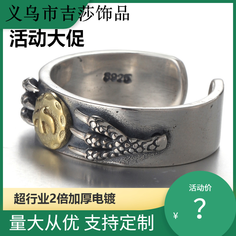 指輪の男性の潮の復古の覇気の風の個性の泰銀の竜の爪の紋章の指の環の口の銀の戒子の潮の男性の現物の卸売り
