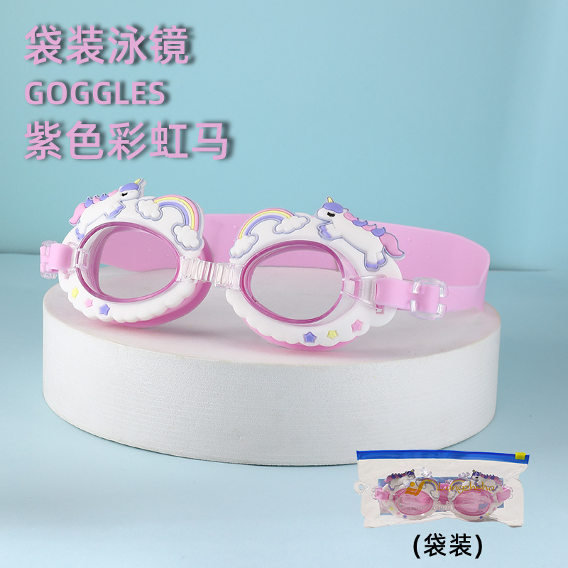 国境を越えたソース2024年の新型少女虹馬アニメ水泳鏡子供防水高精細平光水泳鏡