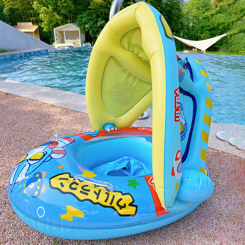 クロスボーダーの新しい商品は日よけの日焼け止めのピンクの人魚の子供の座輪の赤ちゃんの水泳輪と取っ手を持っています。