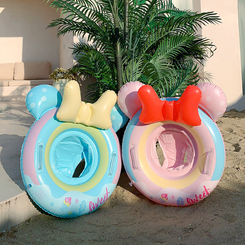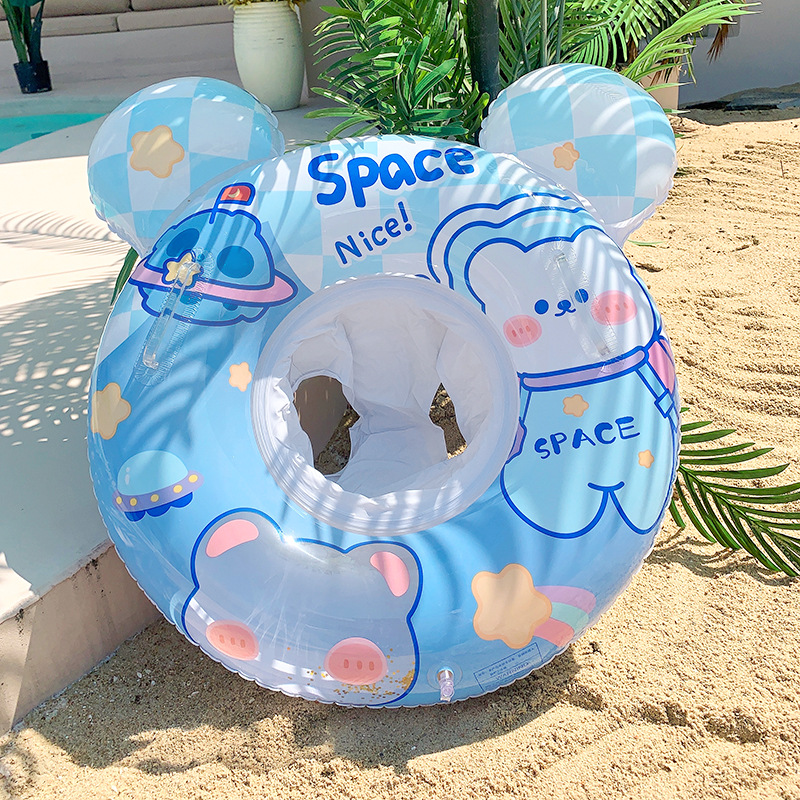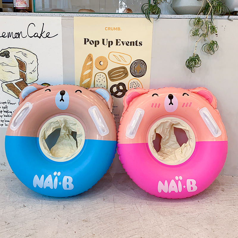 Ins韓国はハンドル付きの立体かわいいピンクの熊の子供の座る輪の赤ちゃんのアニメの水泳輪を厚くします。
